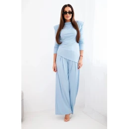 Dámský bavlněný komplet s model 21924489 a kalhotami s širokými nohavicemi modrý - K-Fashion