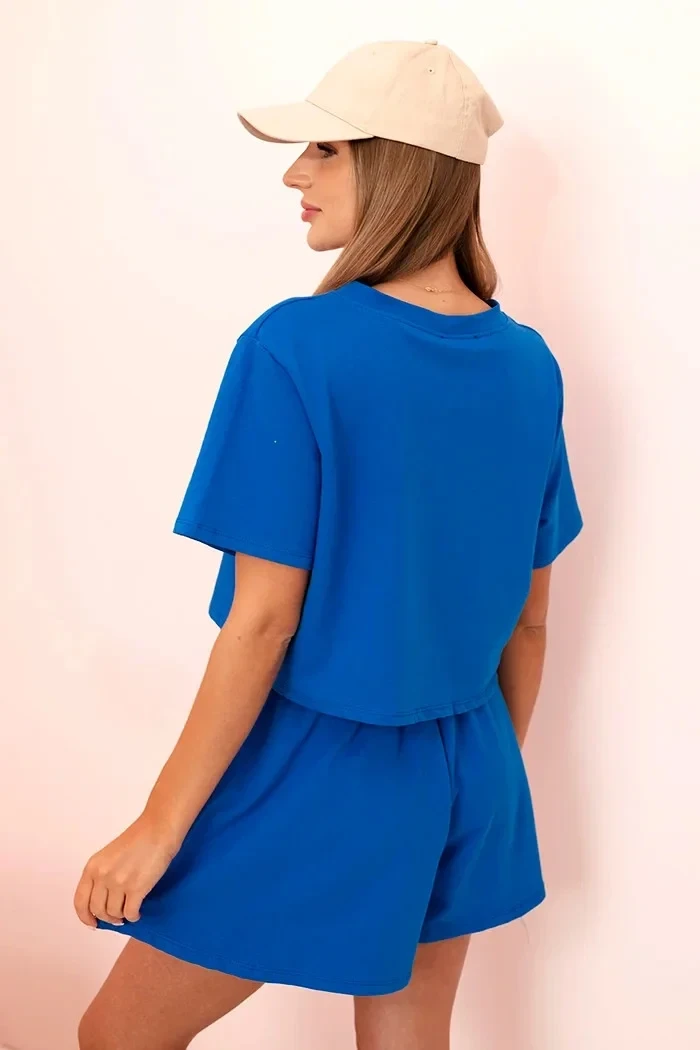Dámský bavlněný komplet s širokými šortkami chrpově modrá