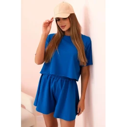 Dámský bavlněný komplet s širokými šortkami chrpově modrá