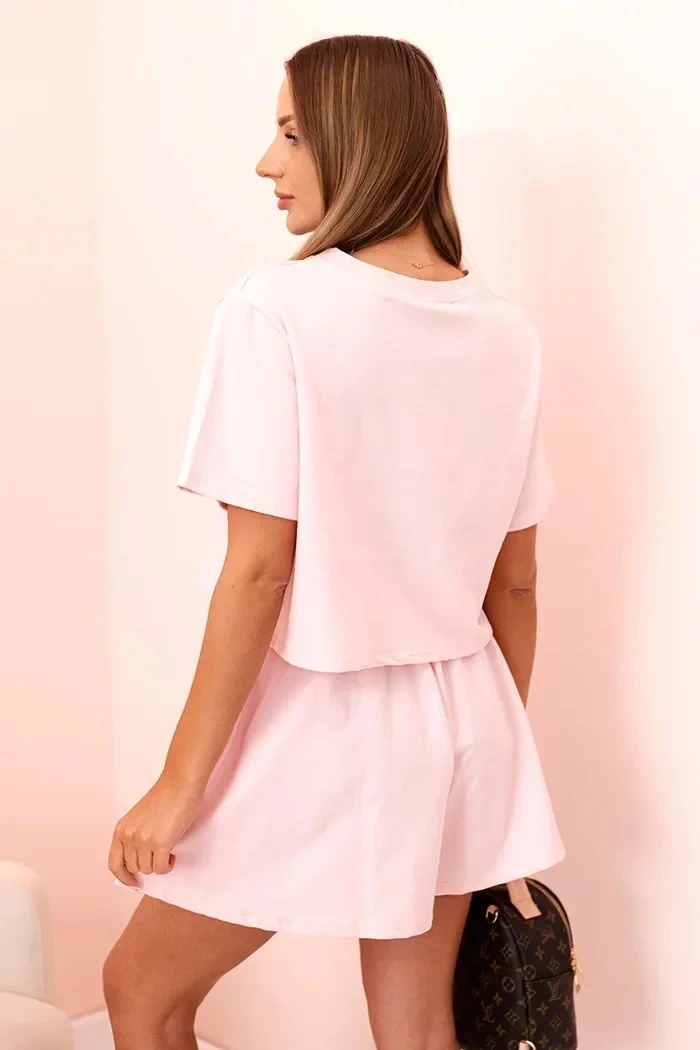 Dámský bavlněný komplet s širokými šortkami pudrově růžová