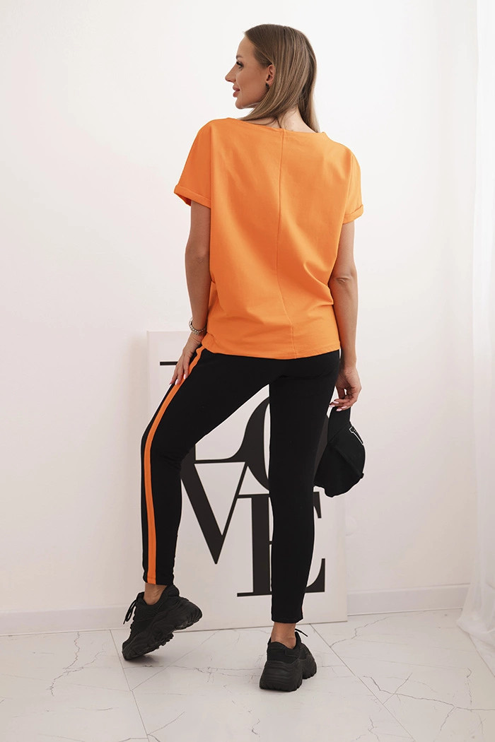 Dámský bavlněný komplet s tričkem a legínami s lampasem oranžový