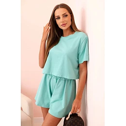 Dámský bavlněný komplet se širokými šortkami mentolový