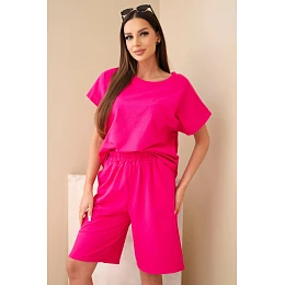Dámský bavlněný komplet — tričko s krátkým rukávem a kraťasy s gumou v pase fuchsiová