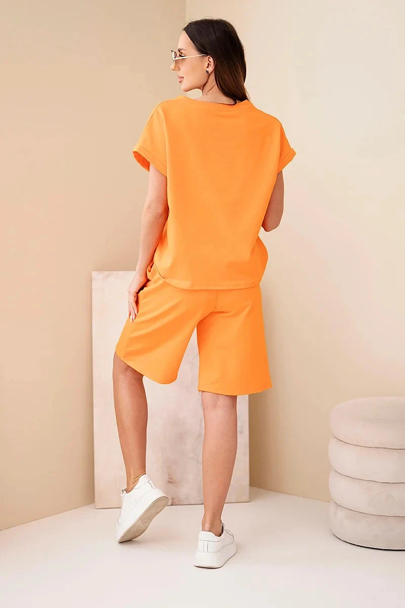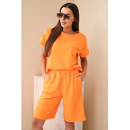 Dámský bavlněný komplet tričko s krátkým rukávem a kraťasy s gumou v pase oranžový