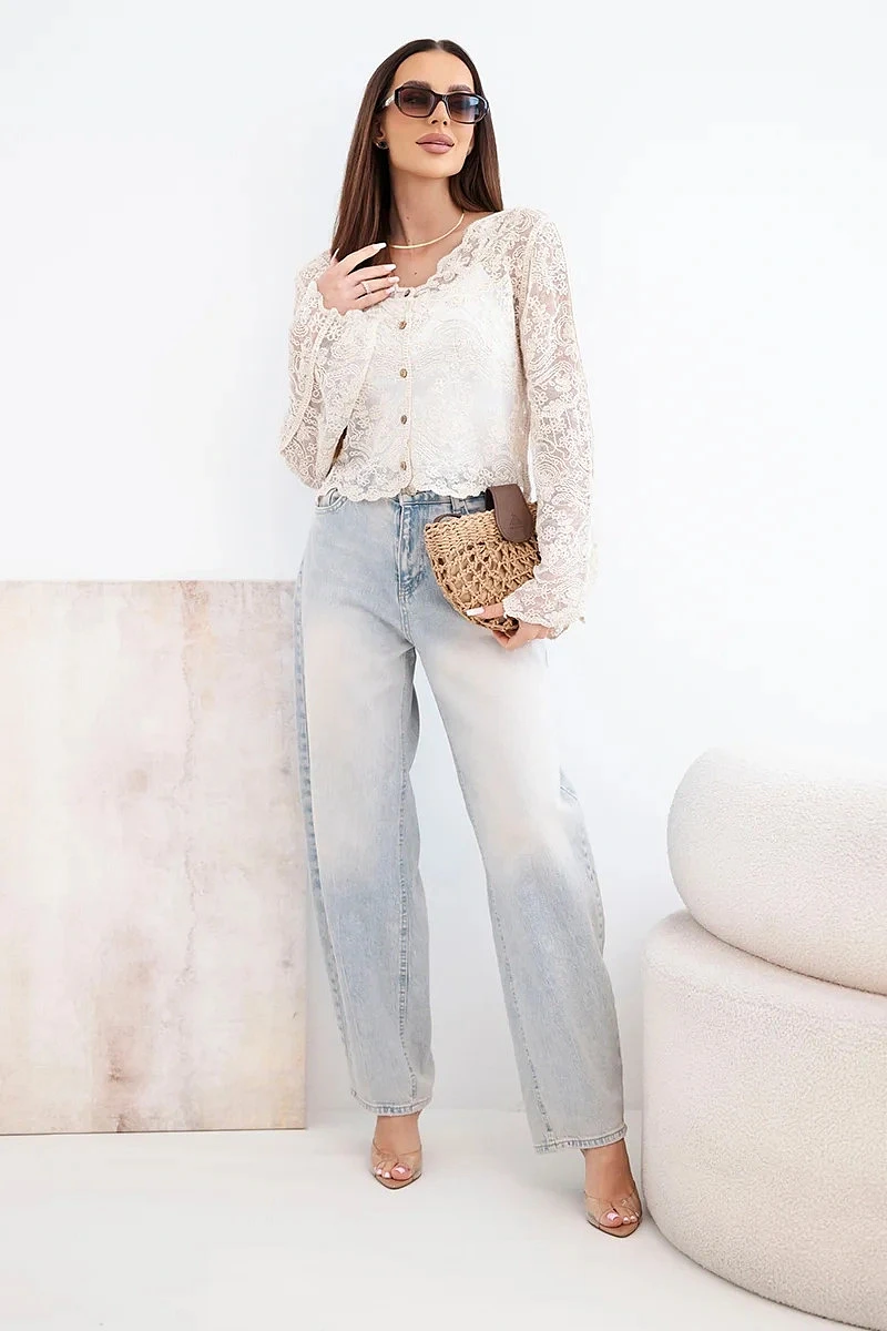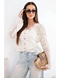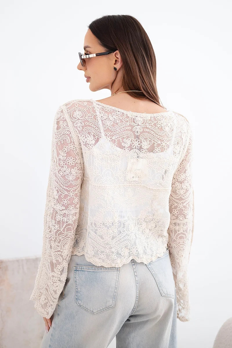 Dámský bavlněný krajkový svetr zapínaný na knoflíky s dlouhým rukávem béžový