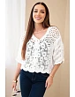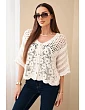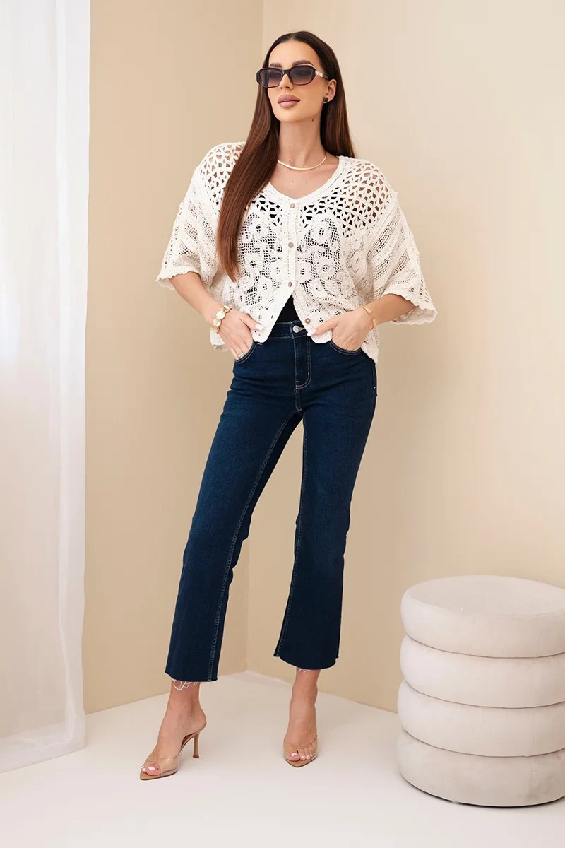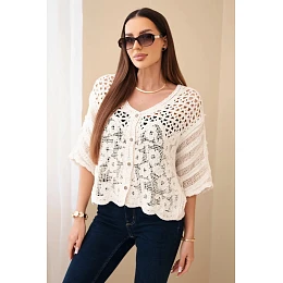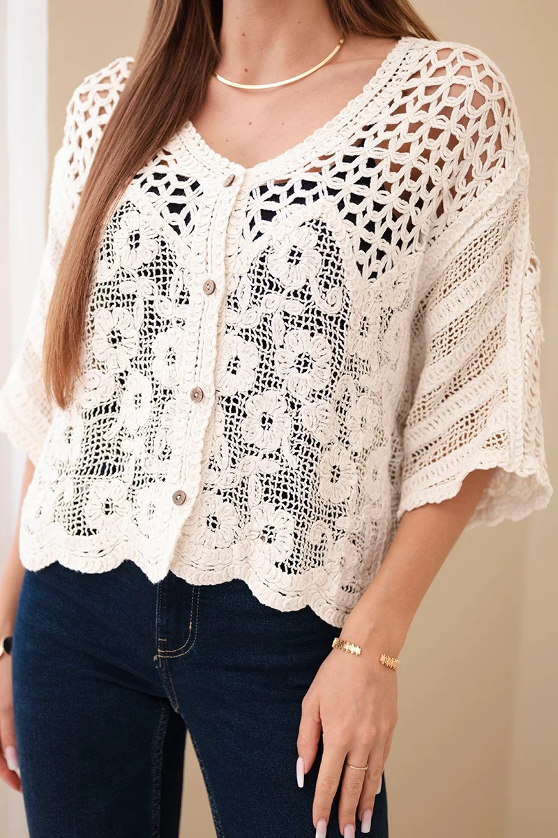 Dámský bavlněný prolamovaný svetr zapínaný na knoflíky s krátkým rukávem béžový