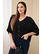 Svetr se zapíná na knoflíky, což z něj dělá velmi funkční a snadno stylovatelný kousek. Lze ho nosit jak jako klasický prvek šatníku, tak i jako lehký přehoz přes top nebo šaty. Kratší délka a volnější střih zajišťují, že se dokonale přizpůsobí postavě, zvýrazní její přednosti a poskytnou volnost pohybu. Krátký rukáv mu dodává lehkost a dělá ho skvělým pro jarní i letní stylizace.
