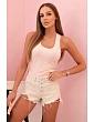 Vyrobený z vysoce kvalitní bavlny s přídavkem elastanu, top je měkký, pružný a velmi pohodlný na nošení. Materiál se přizpůsobuje tělu, zajišťuje pohodlí a volnost pohybu. Je to ideální volba na léto, trénink, procházku nebo neformální vycházku v džínových šortkách nebo kalhotách.