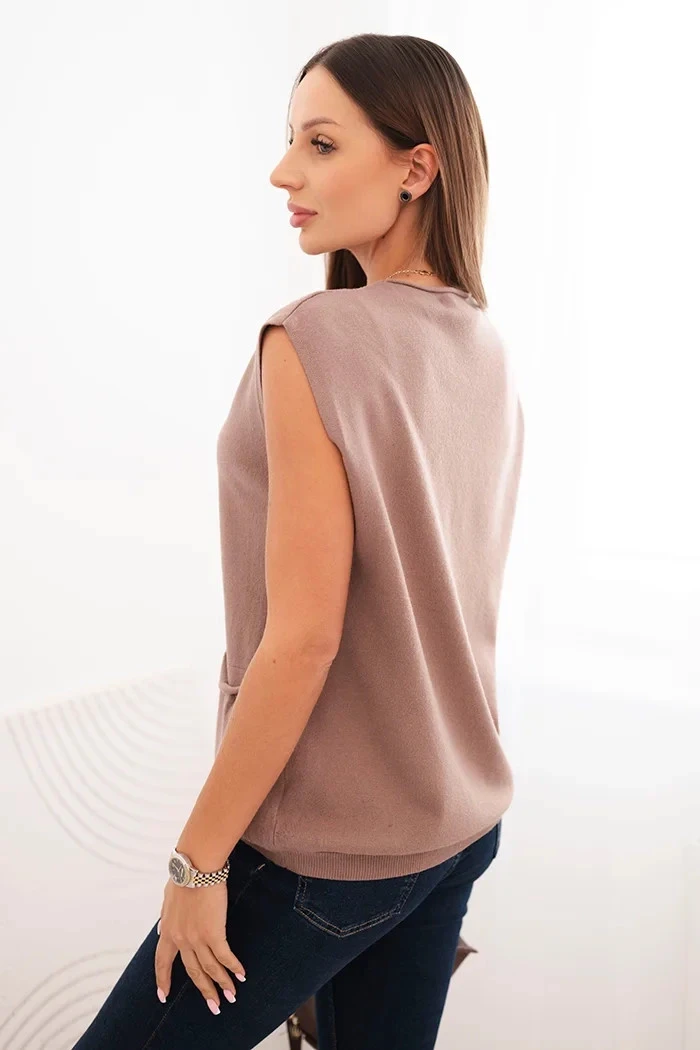 Dámský bezrukávový viskózový svetr s kapsami a V výstřihem fango