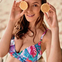 Nový horní díl bikin Maja krásně lichotí nositelce díky okouzlujícímu zavinovacímu efektu v přední části. Hluboký dekolt je jemně tvarovaný měkkými košíčky. Top bez kostic ''Tropic Topic'' s nastavitelnými ramínky a měkká tkanina Silky Shine zajišťují maximální pohodlí.