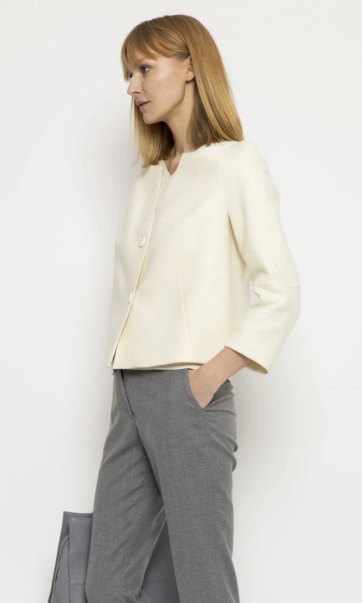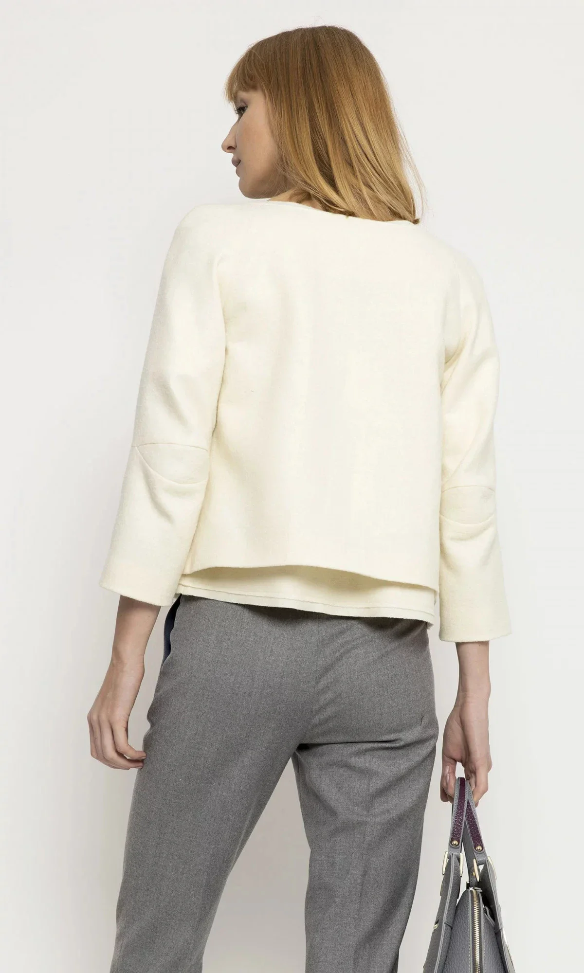 Krémové sako s 3/4 rukávy.