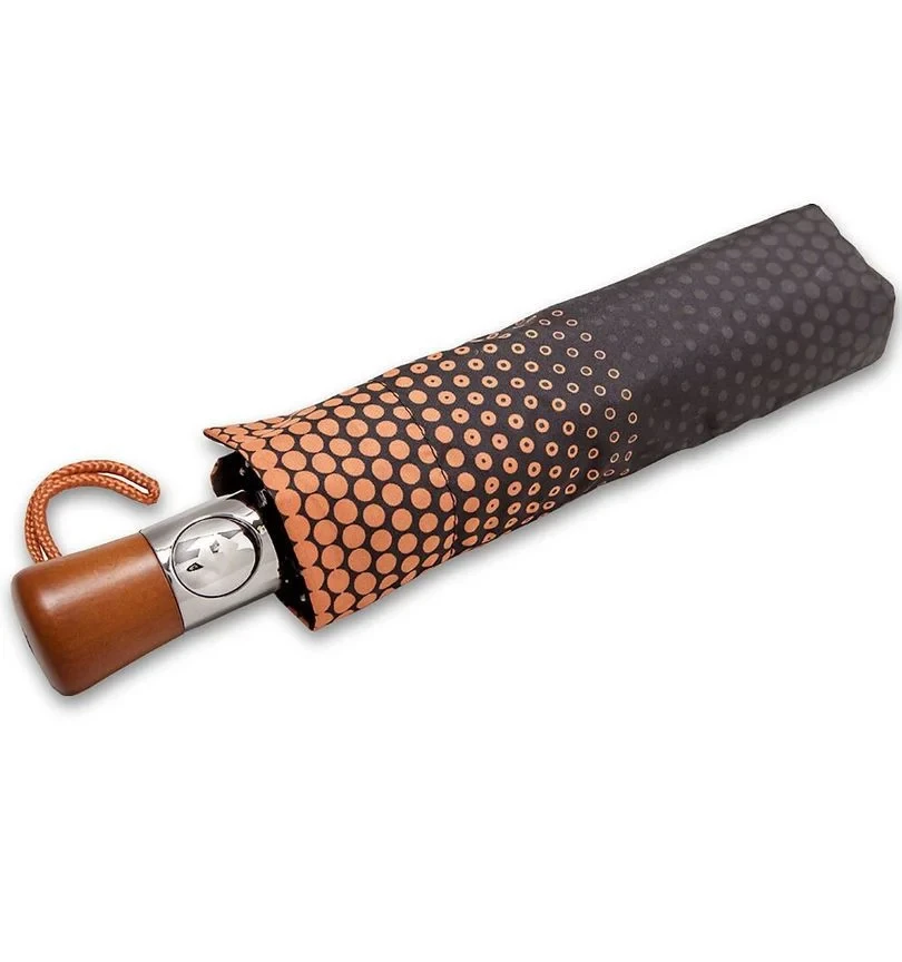 Deštník má automatické otevírání a zavírání. Model má lehkou a odolnou konstrukci z hliníku, skleněných vláken a velmi kvalitní oceli. Teleskopická tyč je ocelová, černá. Úchyt je dřevěný. Látka - polyester Pongee. Průměr - 100 cm. Délka - 29,5 cm. Deštní dobře odolává větru.