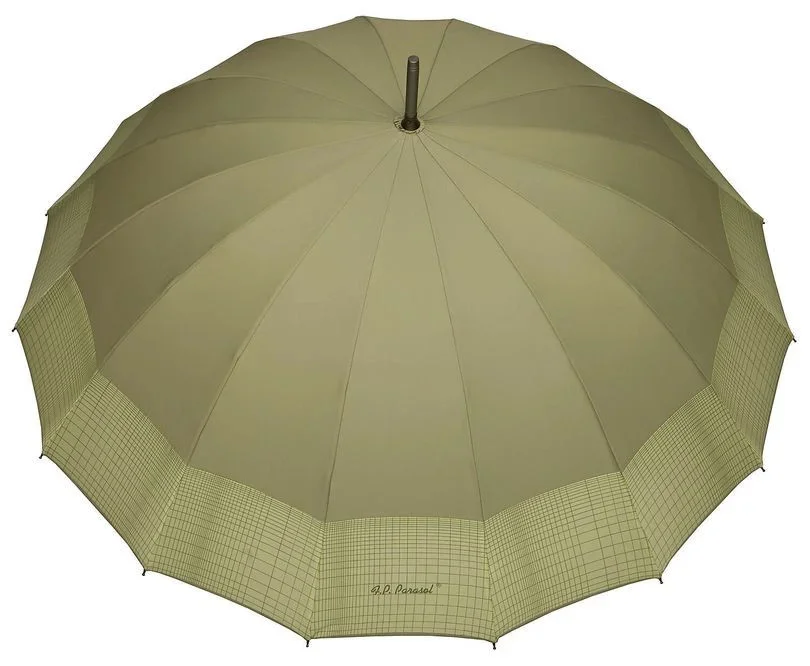 Dlouhý pevný dámský deštník se šestnácti žebry a ručním otevíráním.