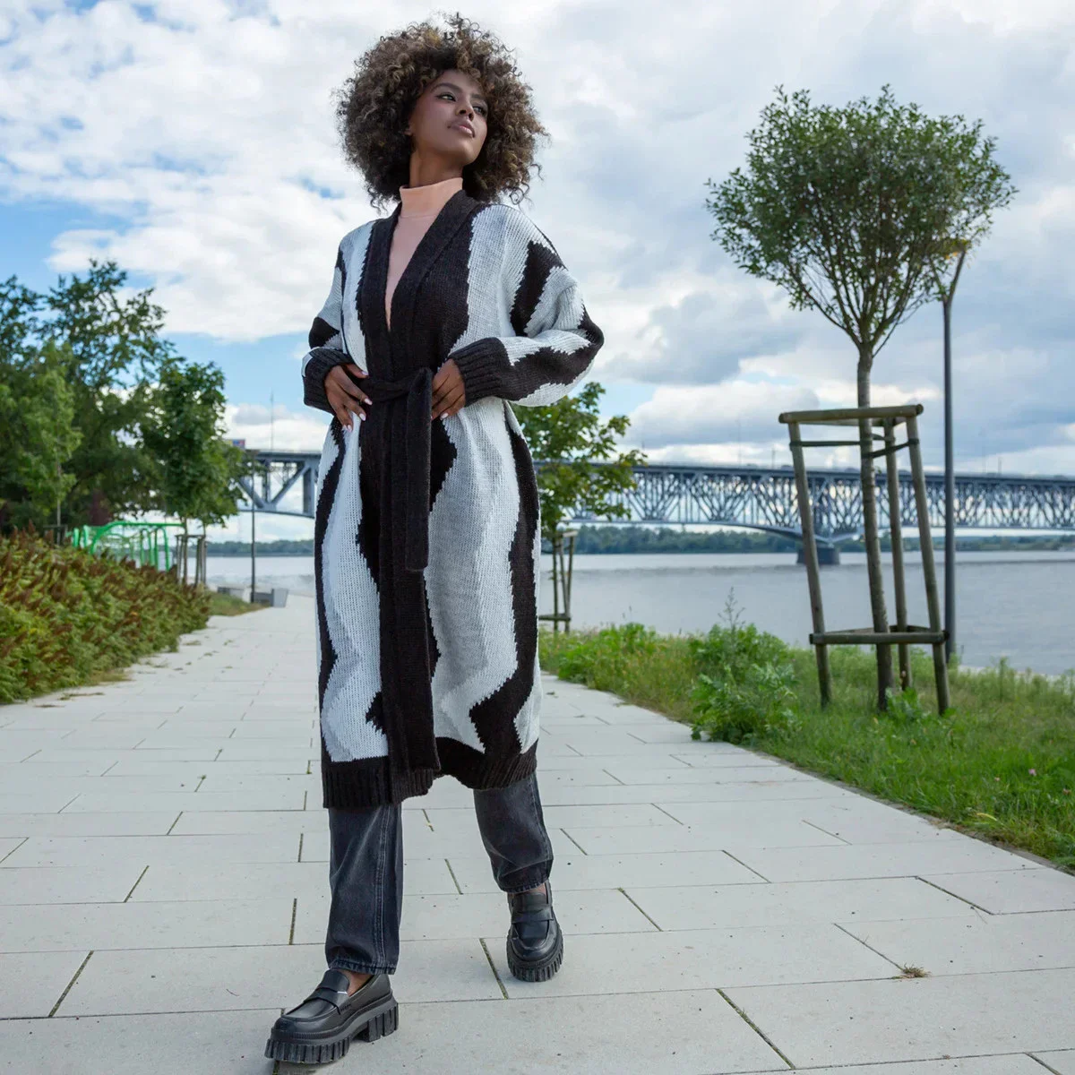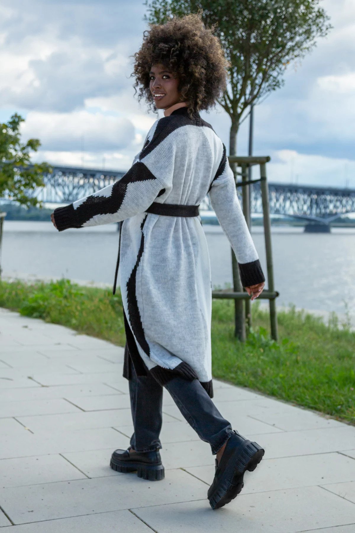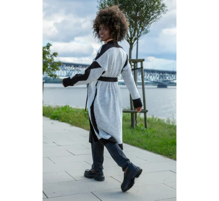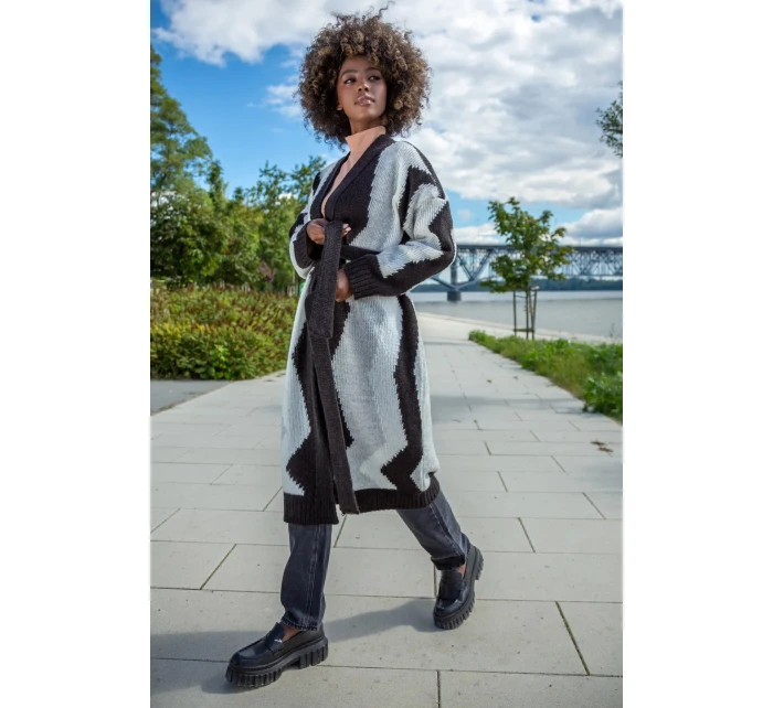 Produkt Dámský dlouhý Cardigan F1498 Černá s bílou mix - Fobya prodáváme v těchto velikostech: 40/42a barvách černá s bílou5903707146468