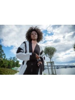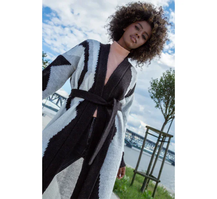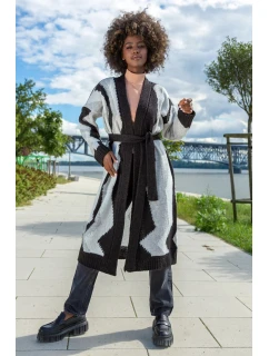 Dámský dlouhý Cardigan F1498 Černá s bílou mix - Fobya