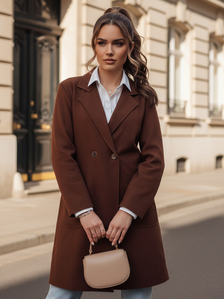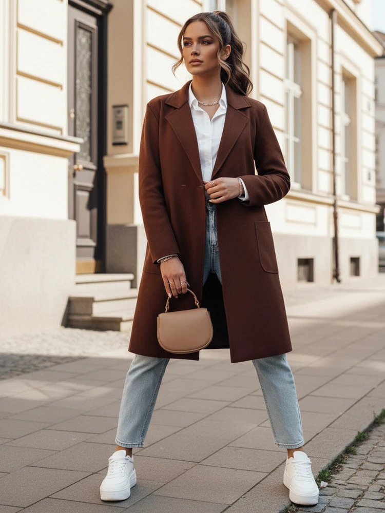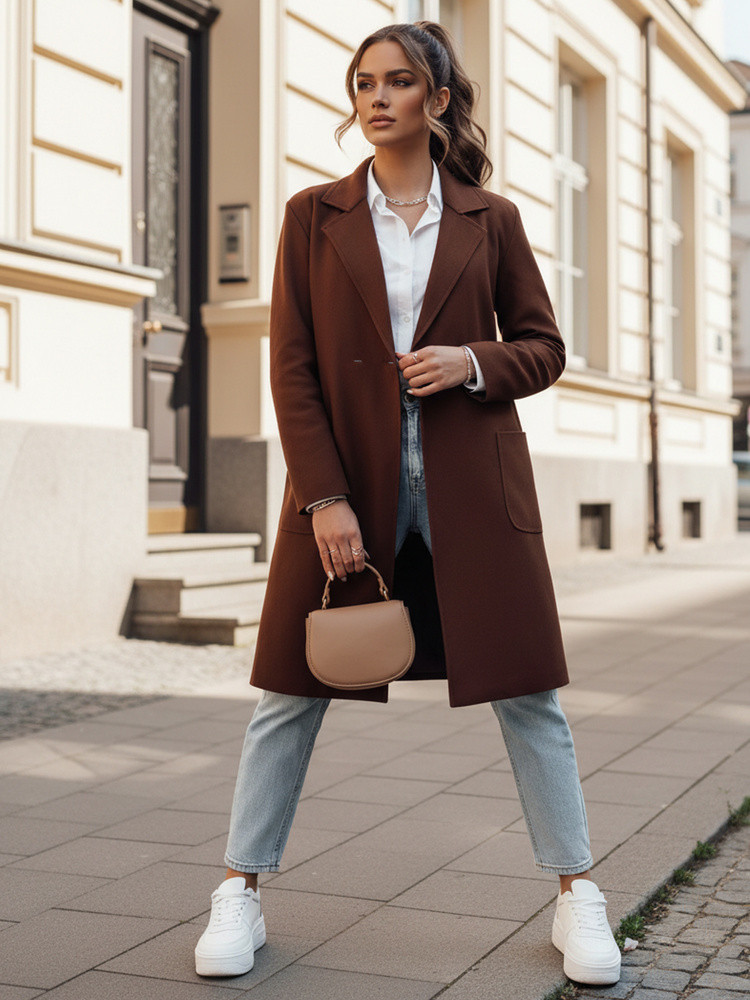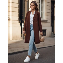 Dámský dlouhý hnědý kabát LINNORE oversize FashionStreet NY0705