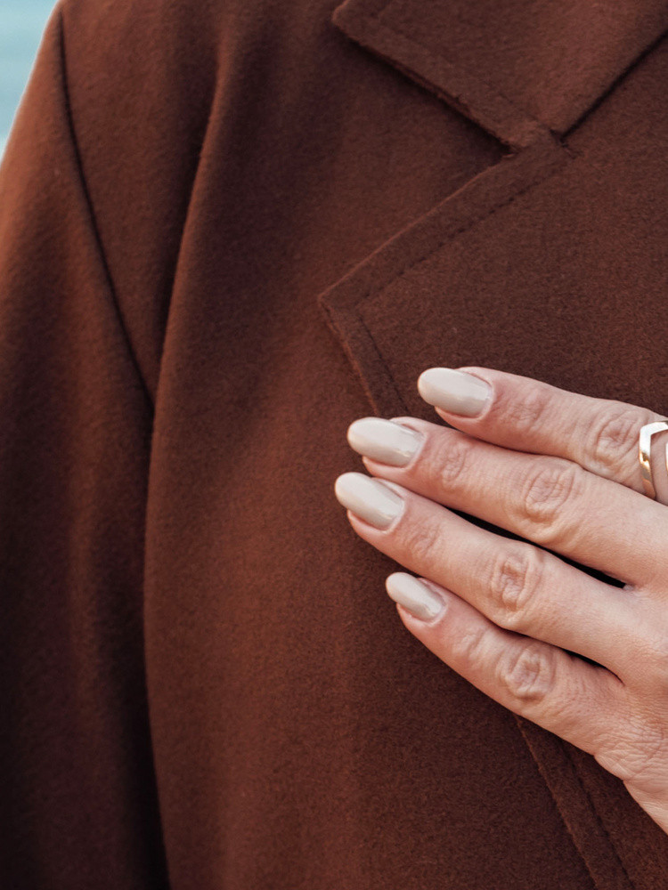 Díky klasickému střihu a jednoduchému tvaru kabát dobře doplní poloformální a kancelářský styling.