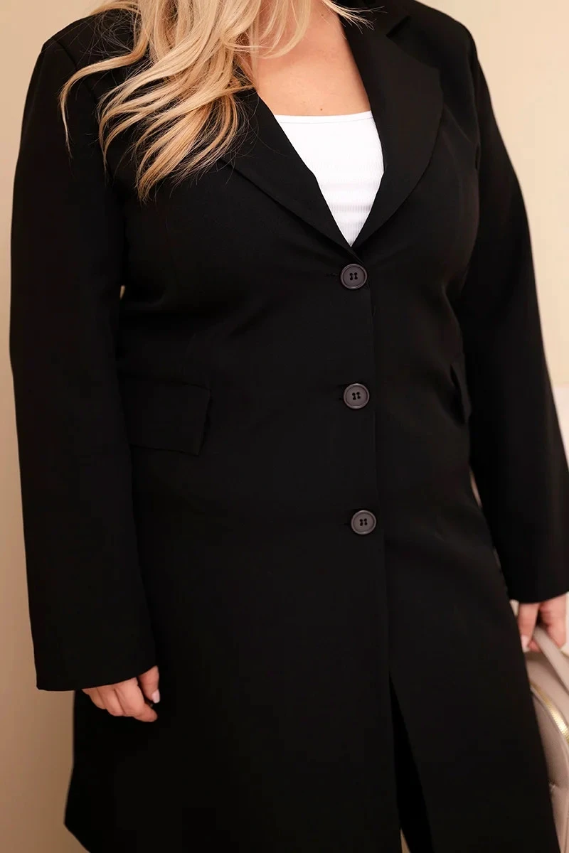 Dámský dlouhý kabát Plus Size s límcem a kapsami černý