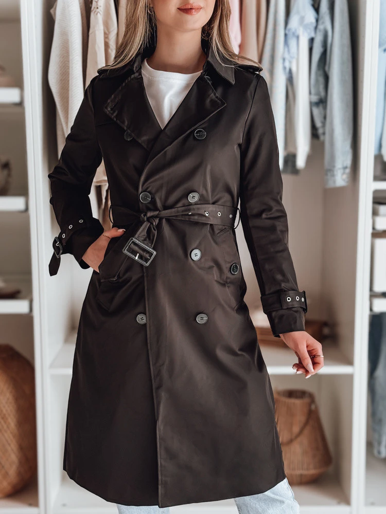 Dámský dlouhý kabát s páskem SLIMFOTA černý FashionStreet NY0747