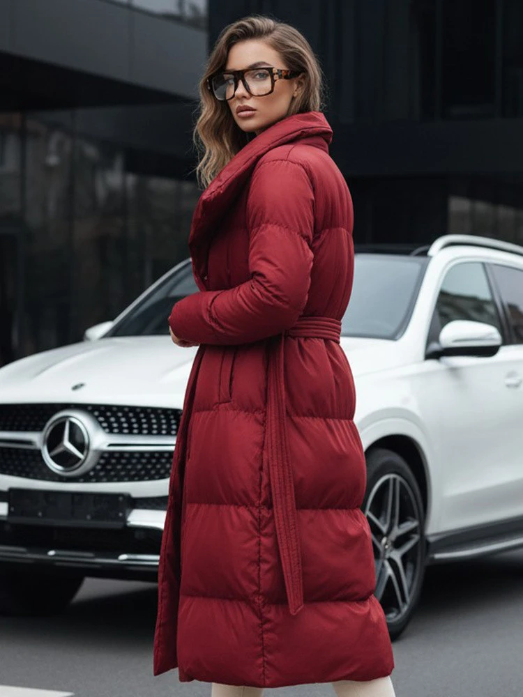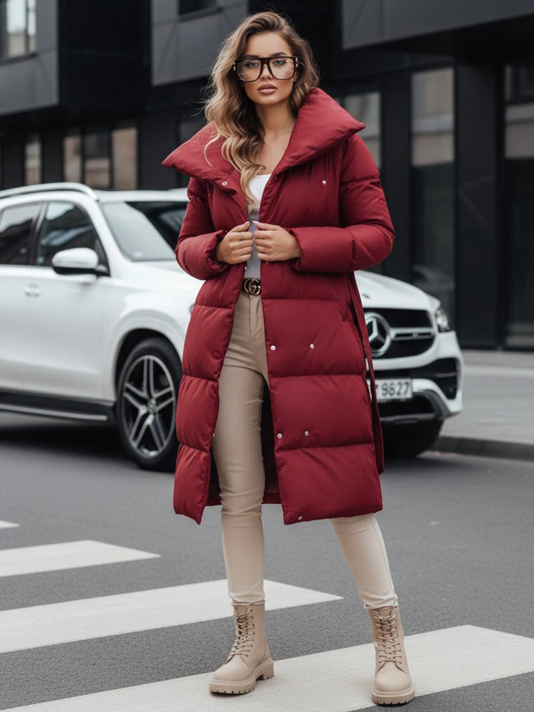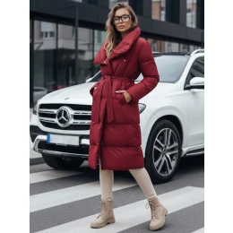 Dámský dlouhý prošívaný kabát bordó model 21990613 - Dstreet