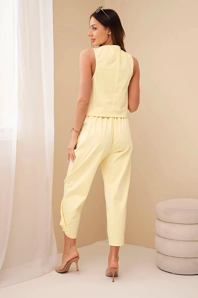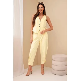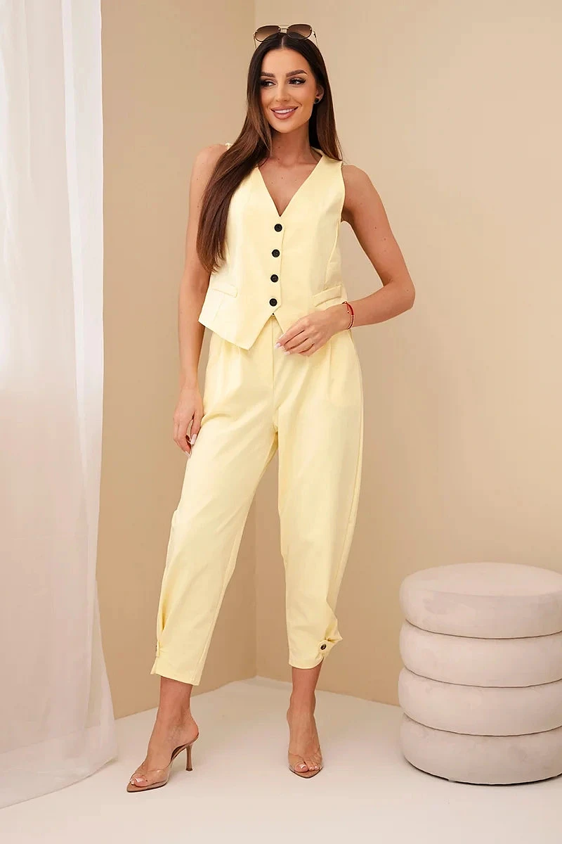 Dámský elegantní komplet s model 22104011 na knoflíky a kalhotami žlutý - K-Fashion