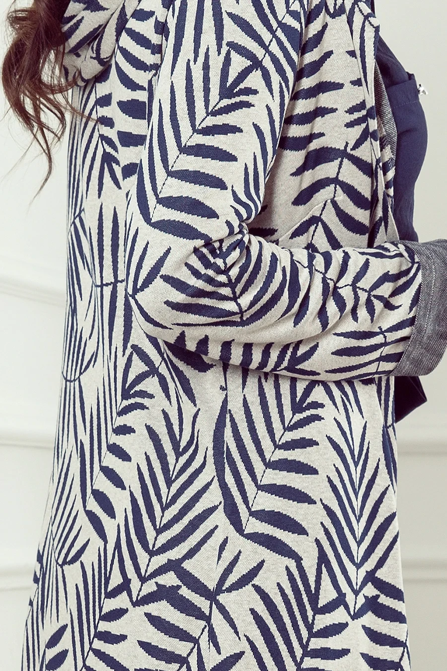 Dámský kabátek 218-3 Numoco - neodnímatelná kapuce - dlouhé rukávy - otevřená přední strana, bez zapínání - dvě kapsy na přední straně - modrý vzor
