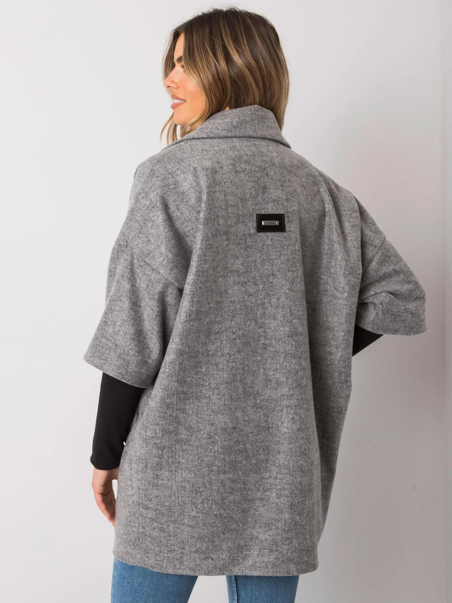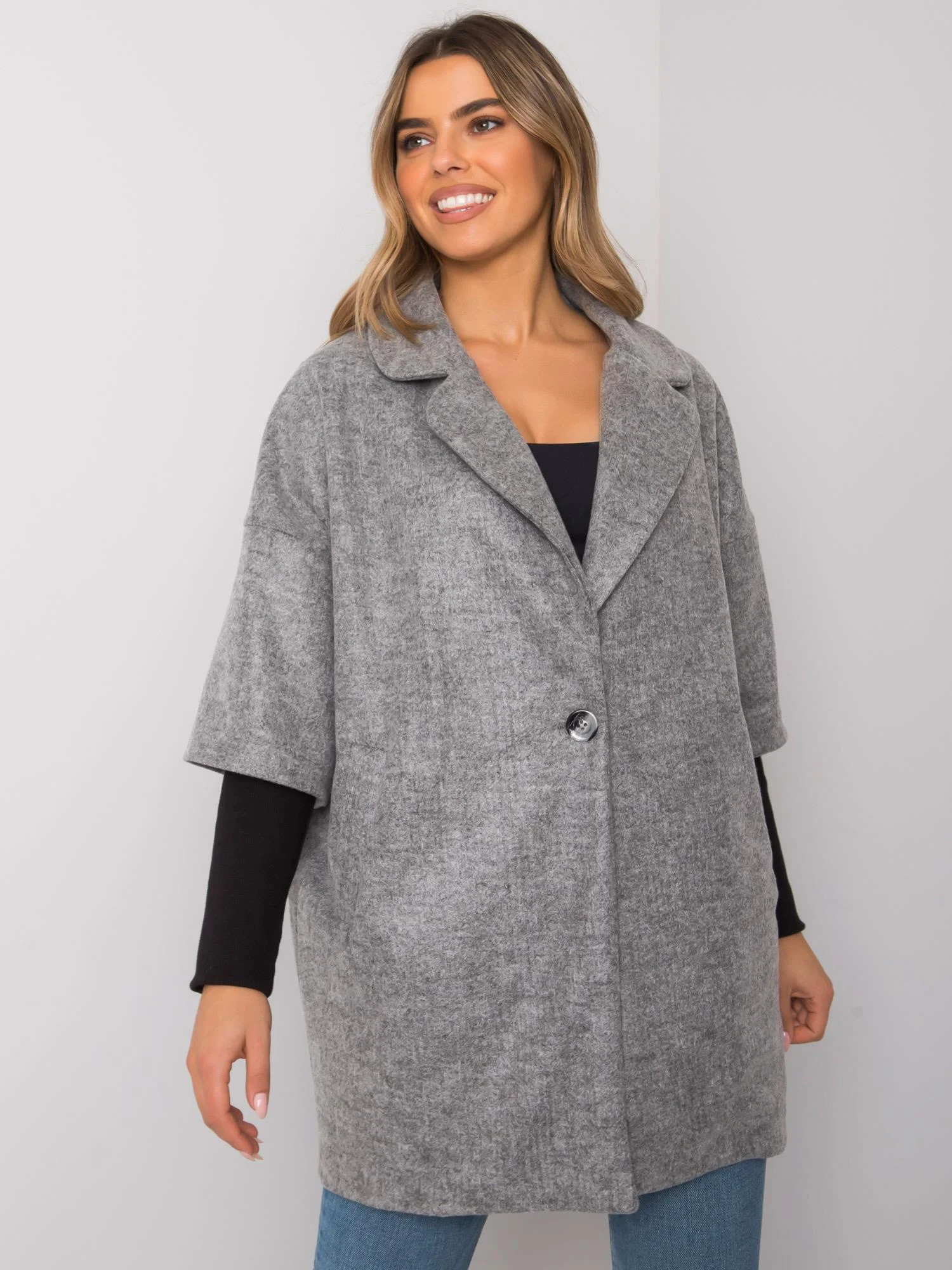 RUE PARIS Šedý oversize kabát Stylový volný kabát vyrobený v Polsku.