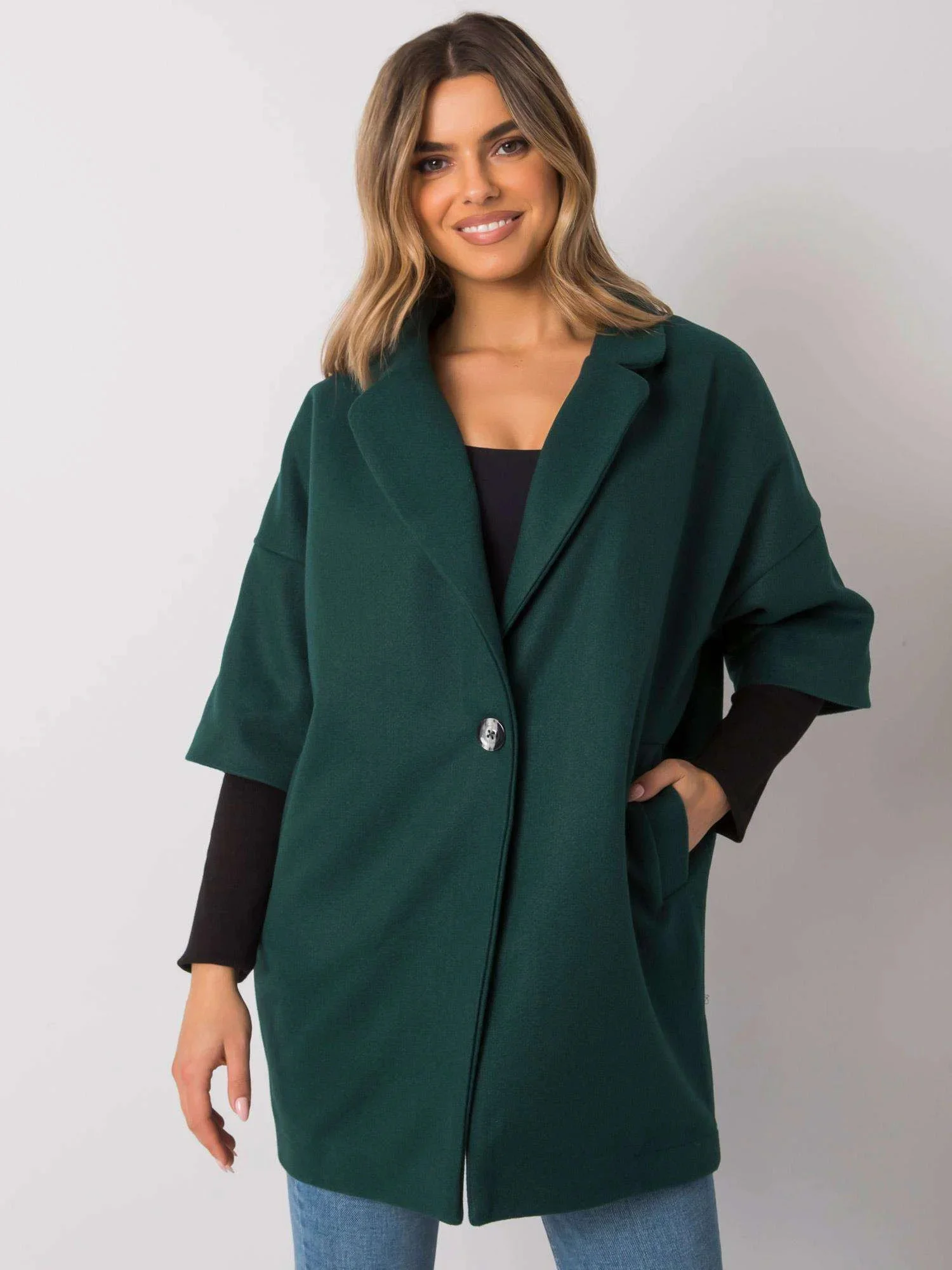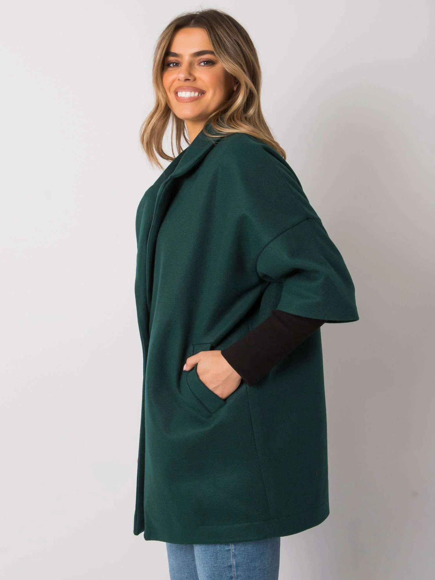 RUE PARIS Tmavě zelený oversize kabát Módní dámský oversize kabát vyrobený v Polsku.