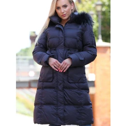 Dámský péřový zimní kabát s kapucí lemovanou přírodní kožešinou je skvělým řešením pro chladnou zimu. Výplň z kachního peří snadno vytvoří účinnou tepelnou bariéru a zahřeje vás již při prvním nošení. Kvintesencí výzdoby je lemování kapuce tmavě šedou kožešinou, která dokonale ladí s barvou svrchní látky.