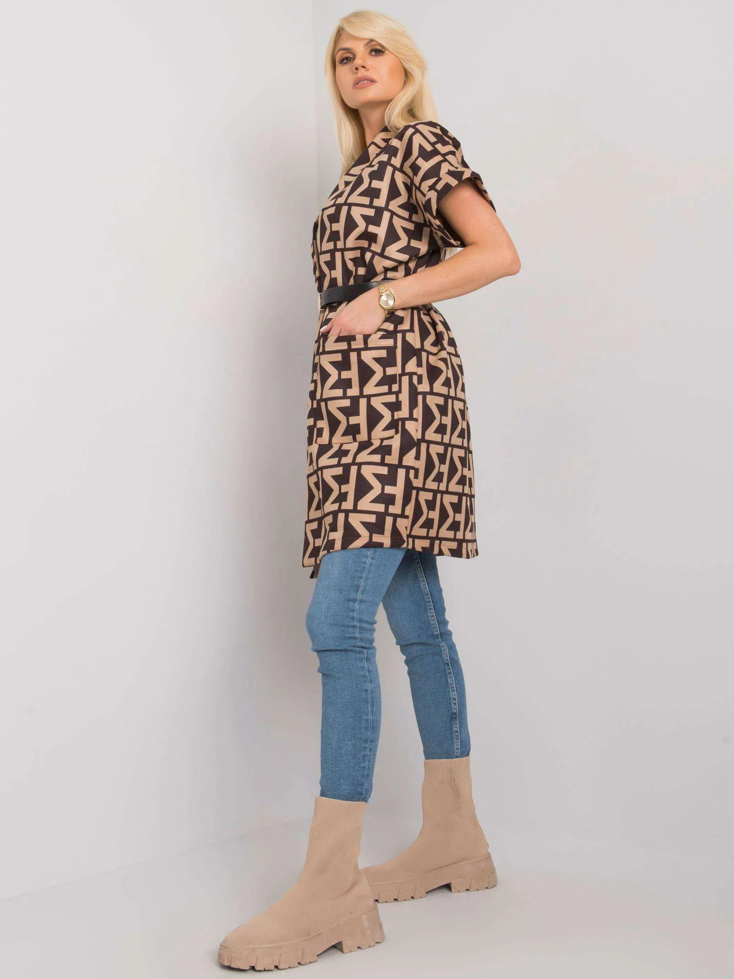 Modelka má na sobě jednu velikost. Rozměry modelky: výška 175 cm, prsa 85 cm, pas 63 cm, boky 95 cm.