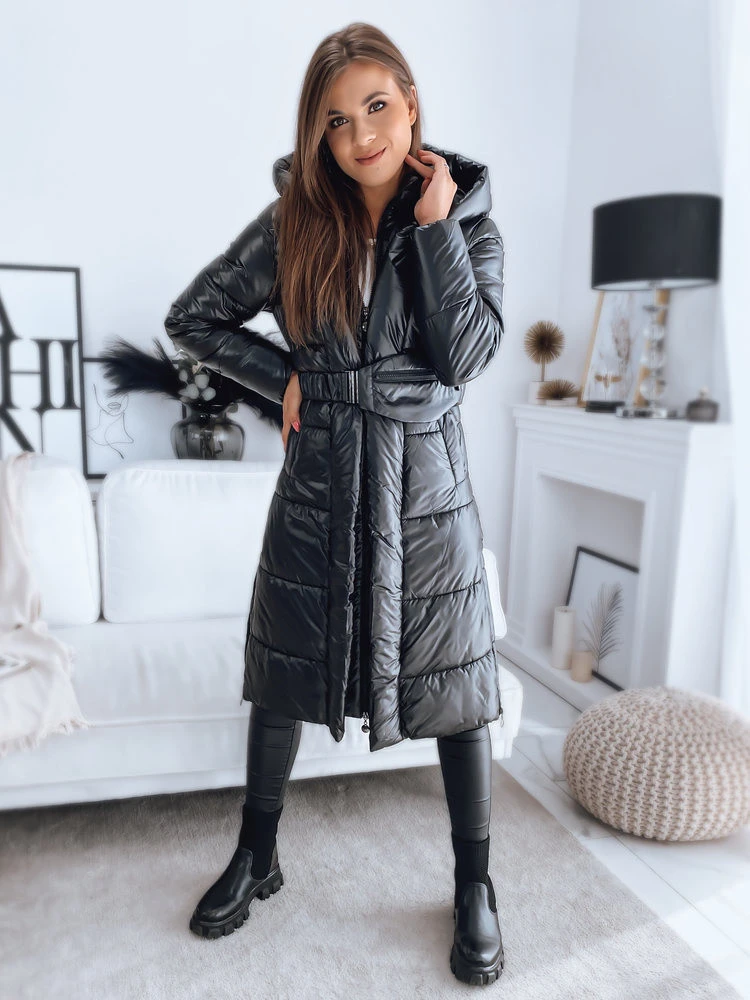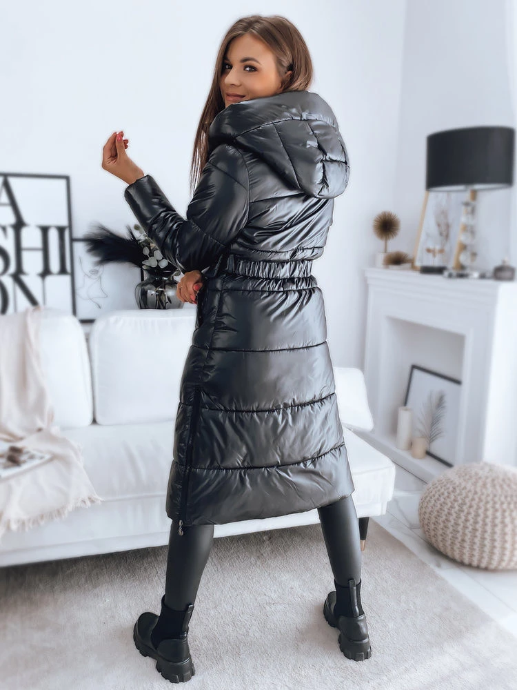 Jedinečný zateplený kabát z lesklého materiálu. Model má neodnímatelnou kapuci, zapínání na zip a zipy na bocích. V pase je pásek a ozdobná kapsa pro větší šmrnc. Pokud se chcete cítit módně a stylově, kabát LINA bude ideální.