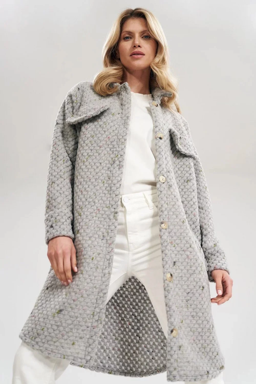 - Midi kabát s kapsami v bočních švech
