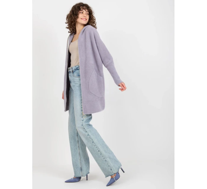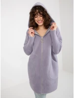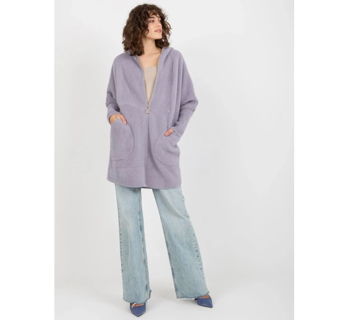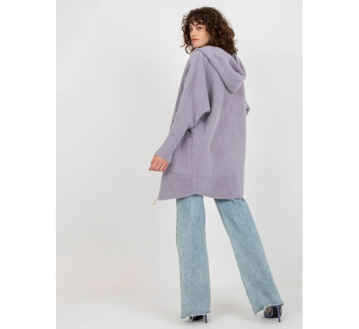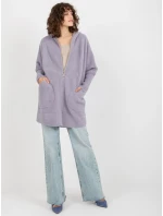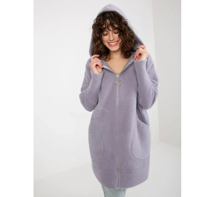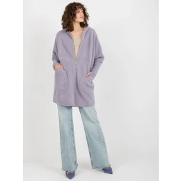 Světle fialový dámský kabát z alpaky s kapucí .