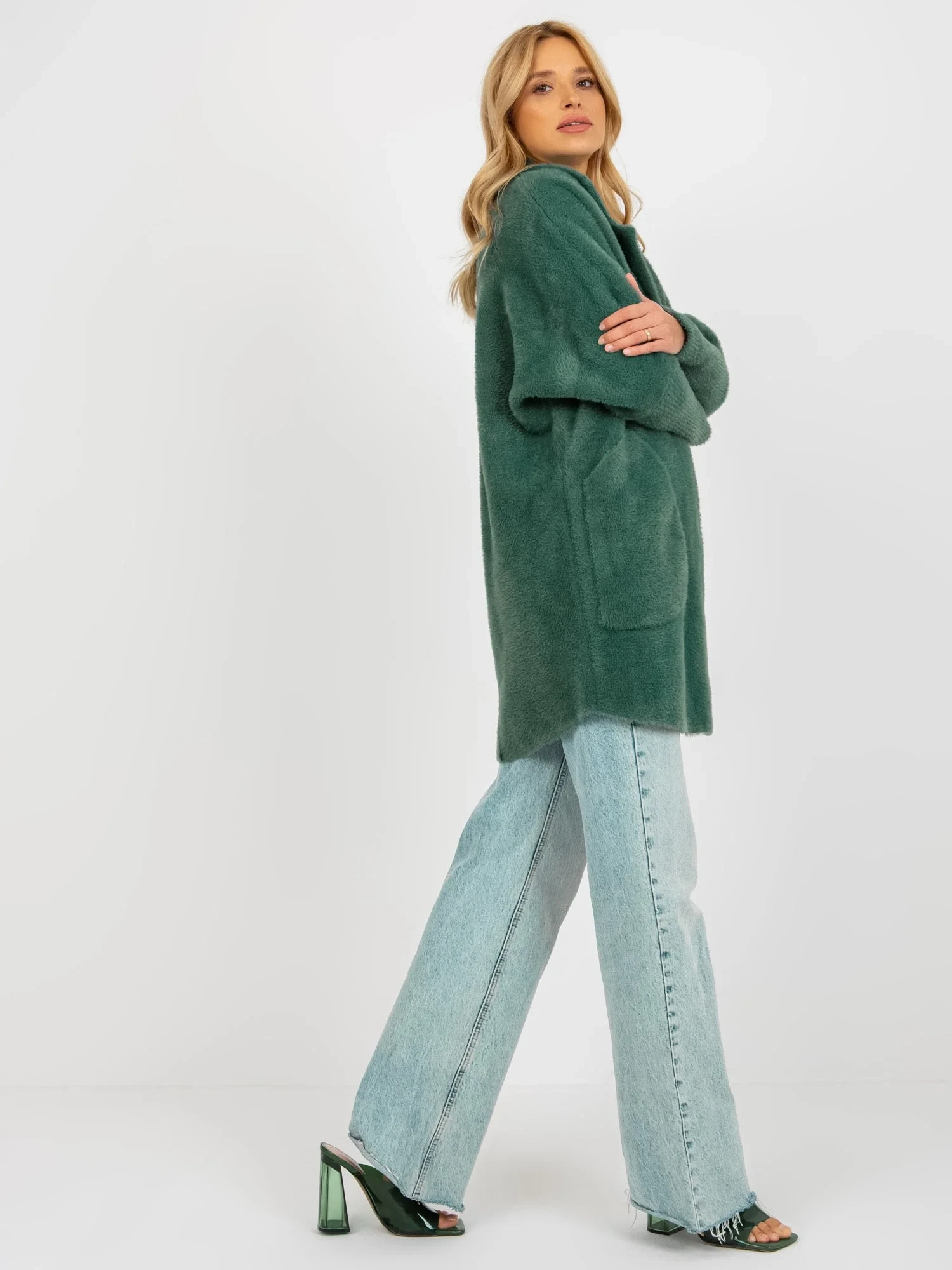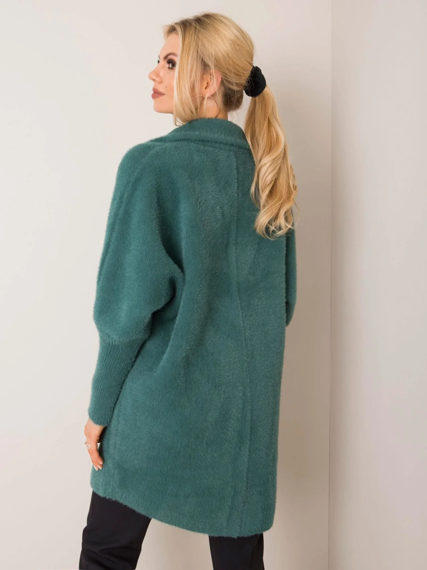 Tmavě zelený huňatý kožich z alpaky.