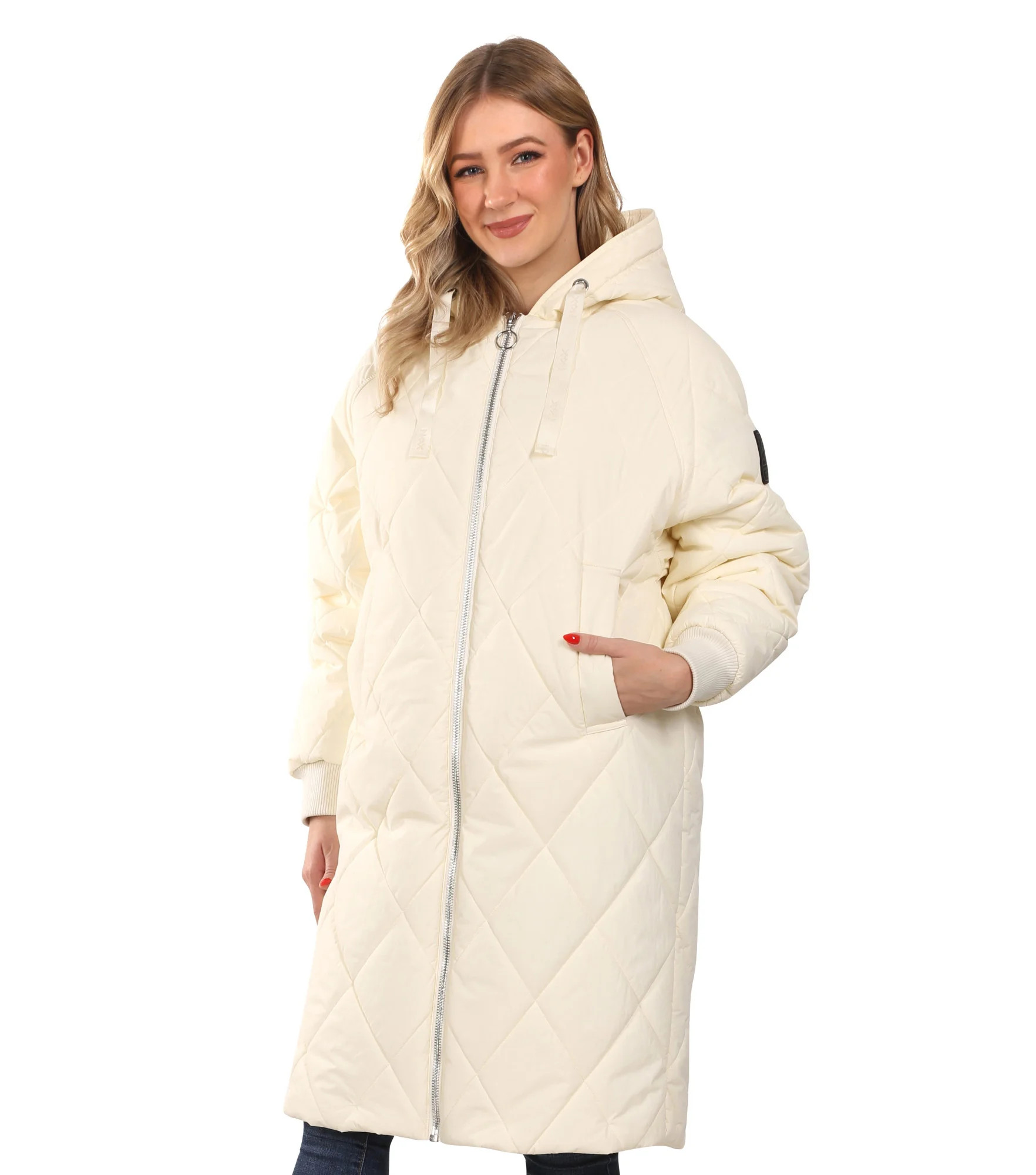 Vyroben je z kvalitního, hřejivého materiálu s vodoodpudivou úpravou, který chrání před větrem i vlhkostí. Delší střih elegantně prodlužuje siluetu, hřejivá výplň zajistí tepelný komfort a kapuce s vyšším límcem poskytne ochranu i během větrných a mrazivých dnů. Kabát má také praktické zipové kapsy, které jsou skryté a nenarušují čistý design.
