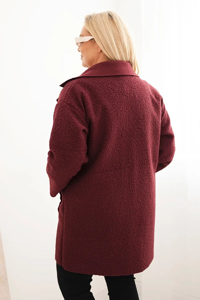 Dámský kabát Plus Size beránek s vlnou a kapsami švestkový