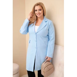 Dámský kabát Plus Size dlouhý s límcem a kapsami modrý