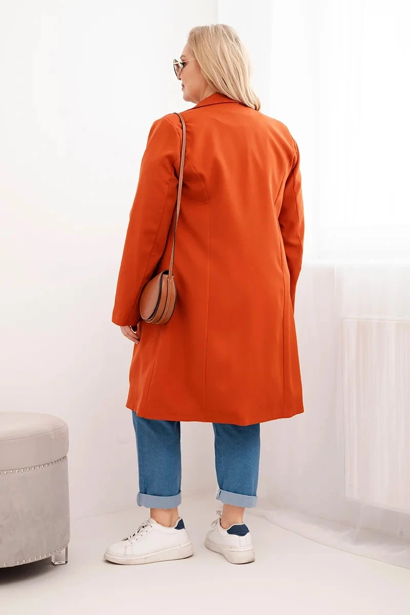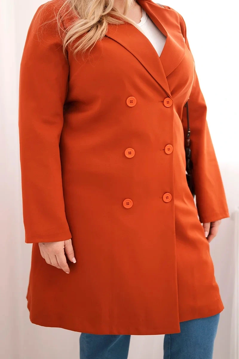 Dámský kabát Plus Size dvouřadový s límcem rudy