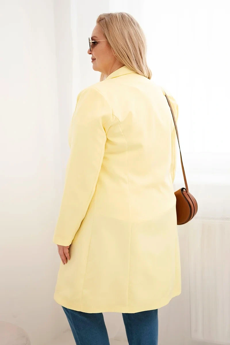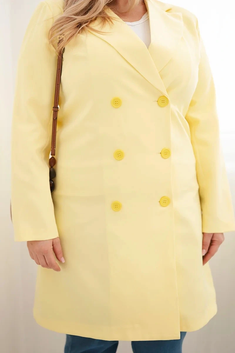 Dámský kabát Plus Size dvouřadový s límcem žlutý