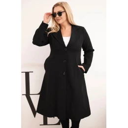 Dámský kabát Plus Size klasický s knoflíky a límcem černý