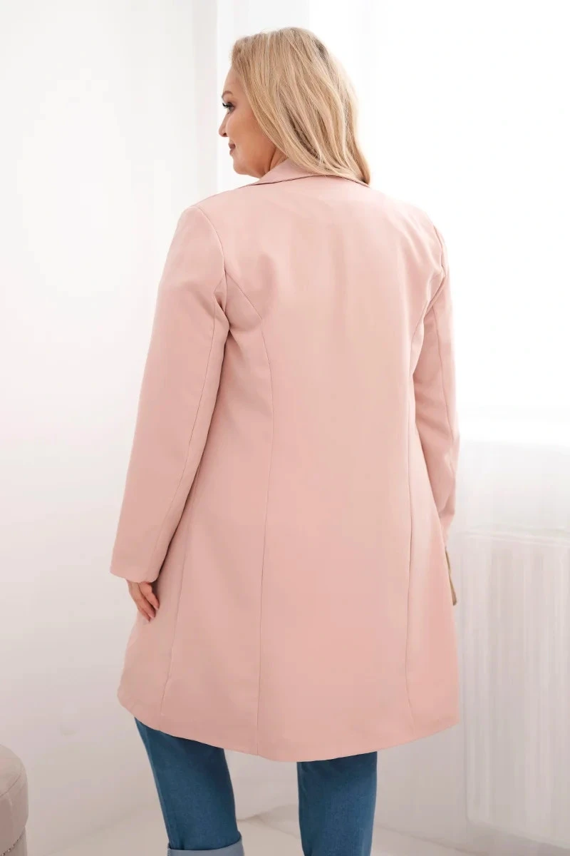 Dámský kabát Plus Size model 21959204 s límcem tmavě pudrově růžový - K-Fashion