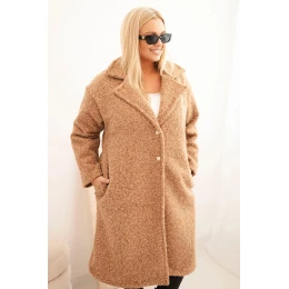 Dámský kabát Plus Size s vlnou a velkým límcem camelový