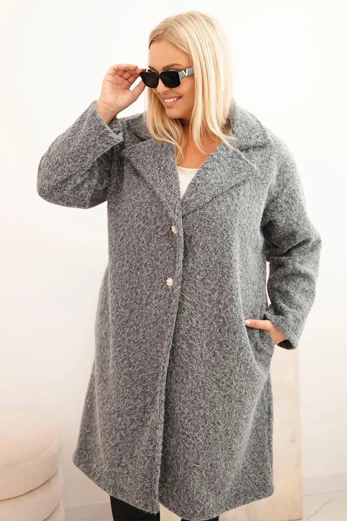 • Dámský kabát Plus Size s vlnou a velkým límcem šedý