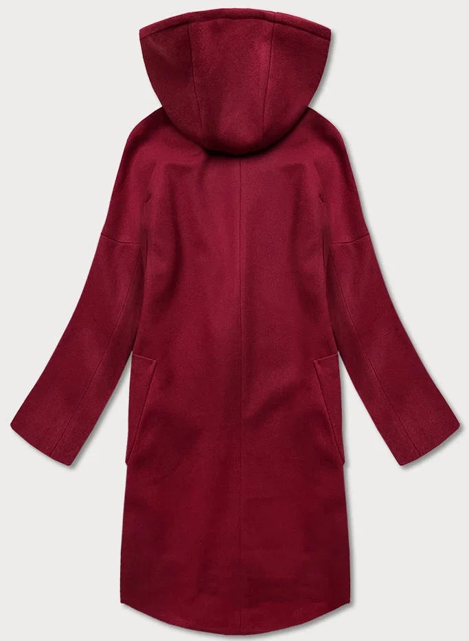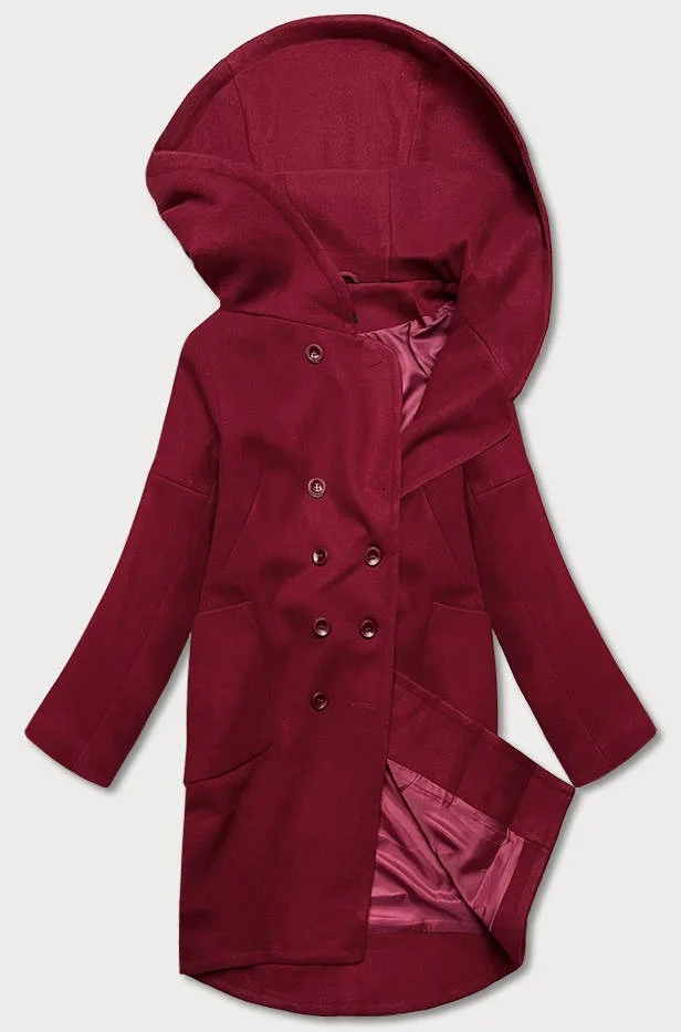 Dámský kabát plus size v bordó barvě s kapucí (2728)