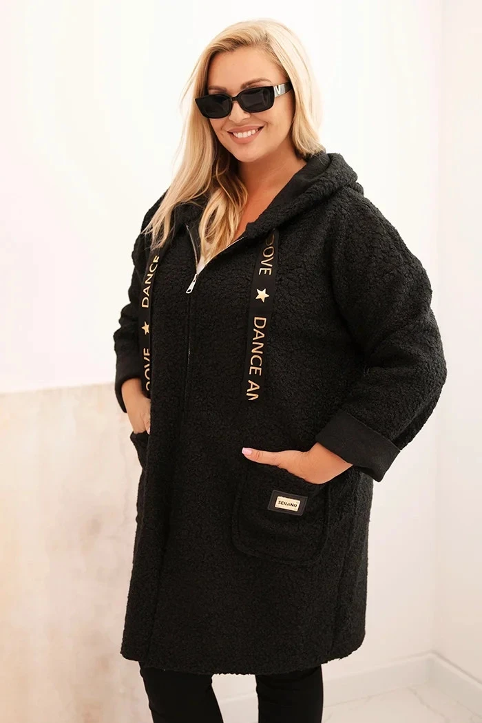 3. Dámský kabát Plus Size z s kapucí a kapsami černý model 21297040 - K-Fashion