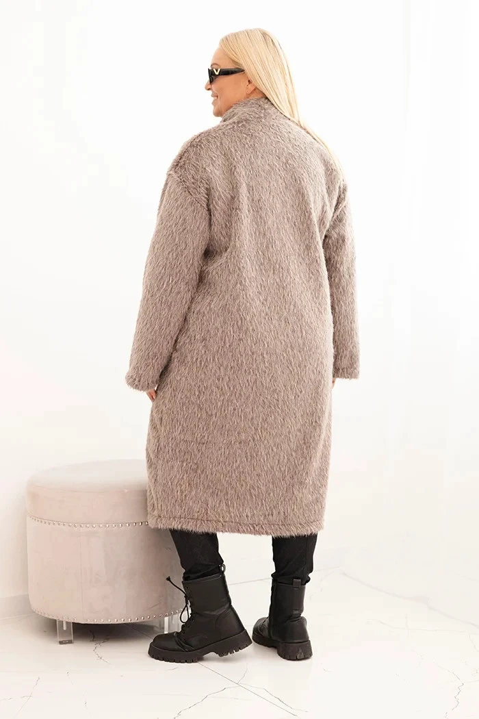 Dámský kabát Plus Size z viskózy bez zapínání s kapsami fango