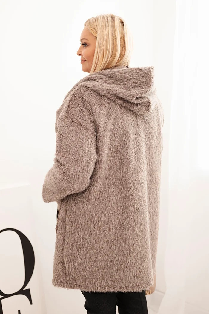 Dámský kabát Plus Size z viskózy na zip s kapucí fango