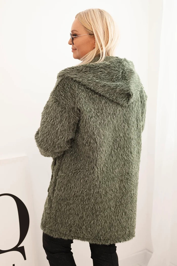 Dámský kabát Plus Size z viskózy na zip s kapucí khaki