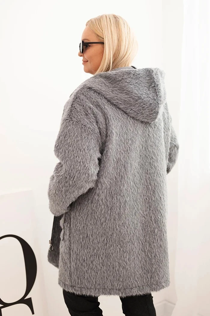 Dámský kabát Plus Size z viskózy na zip s kapucí šedý