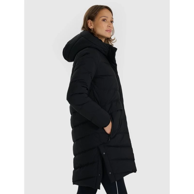 dámský péřový kabát 4F je ideální volbou pro zimní dny, kdy je nezbytná účinná ochrana před chladem a pohodlí. Přírodní péřová výplň zaručuje vysokou úroveň tepelné izolace v chladných dnech s nízkou vlhkostí, zatímco hydrofobní povlak snižuje absorpci vlhkosti při srážkách.